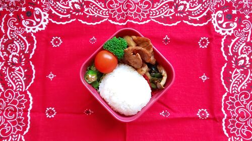 ・豚肉のめんつゆ煮 ・ほうれん草とにんじんの胡麻和え ・キャベツのゆかり和え ・ブロッコリー ・ミニトマト ・おにぎり 豚もも肉をめんつゆで煮ただけ。 超簡単。 めんつゆとか焼肉のタレとか 味がブレないので 料理苦手な私みたいな人間は 本当に助かって…